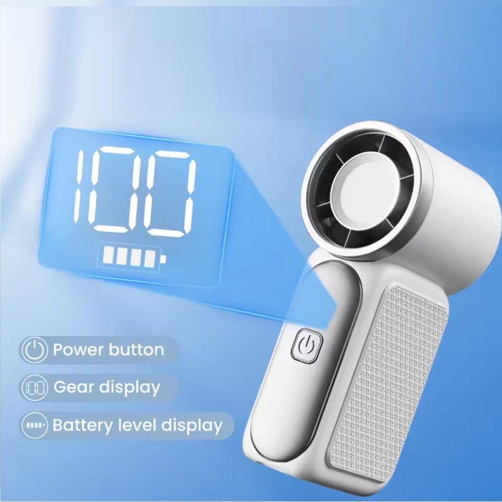 FrostFlow Mini Turbo Fan – Ultra-Portable High-Power Handheld Cooling Fan with Rechargeable Battery